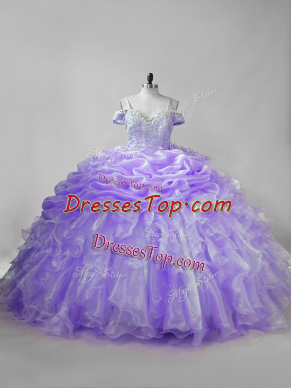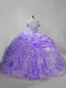 Stylish Sleeveless Organza Brush Train Lace Up Ball Gown Prom Dress in Lavender with Beading and Ruffles and Pick Ups
