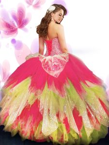 Stylish Sweetheart Sleeveless Tulle Vestidos de Quinceanera Beading and Ruffled Layers Lace Up