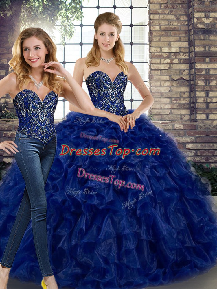 Stylish Two Pieces Vestidos de Quinceanera Royal Blue Sweetheart Organza Sleeveless Floor Length Lace Up