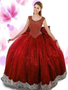 Suitable Ball Gowns Sweet 16 Dress Wine Red Scoop Organza Sleeveless Floor Length Zipper