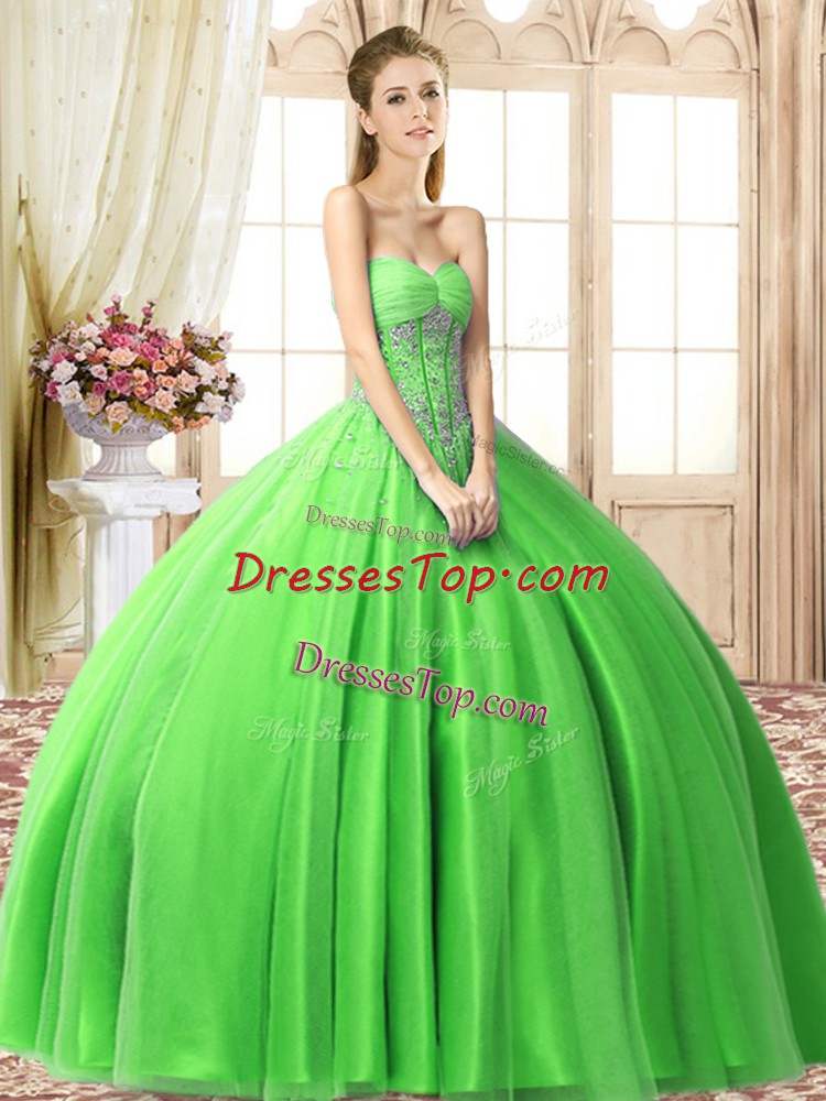 Suitable Beading 15th Birthday Dress Lace Up Sleeveless Floor Length