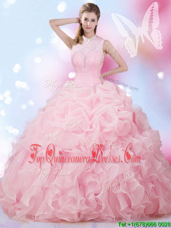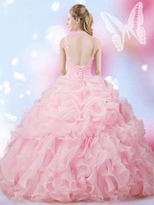Suitable Beading and Ruffles and Pick Ups Vestidos de Quinceanera Baby Pink Lace Up Sleeveless Floor Length