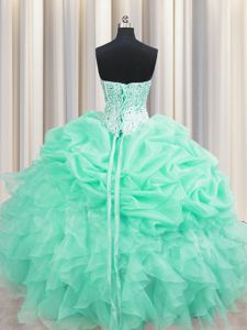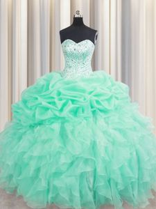 Suitable Champagne Organza Lace Up Sweetheart Sleeveless Floor Length 15 Quinceanera Dress Beading