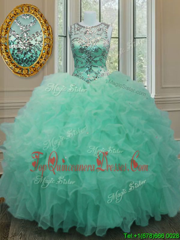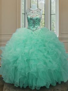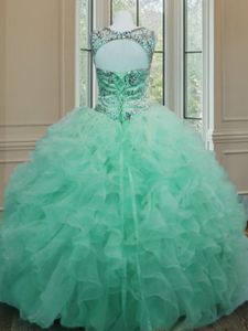 Suitable Floor Length Apple Green Quinceanera Dress Scoop Sleeveless Lace Up