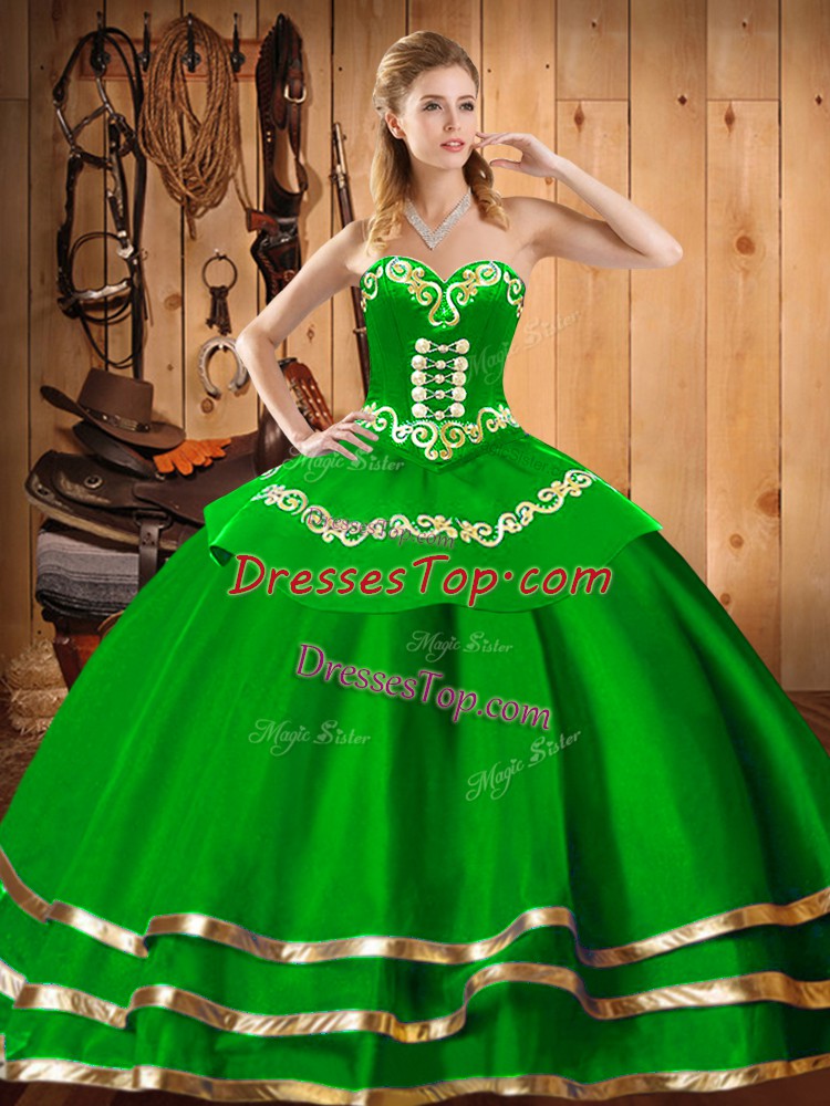 Suitable Floor Length Green 15 Quinceanera Dress Sweetheart Sleeveless Lace Up