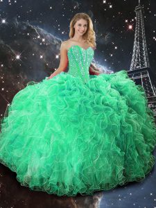 Suitable Green Sweetheart Neckline Beading and Ruffles Ball Gown Prom Dress Sleeveless Lace Up