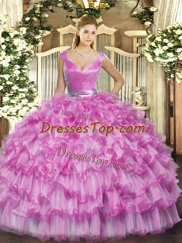Suitable Lilac V-neck Zipper Ruffled Layers Quinceanera Dresses Sleeveless
