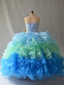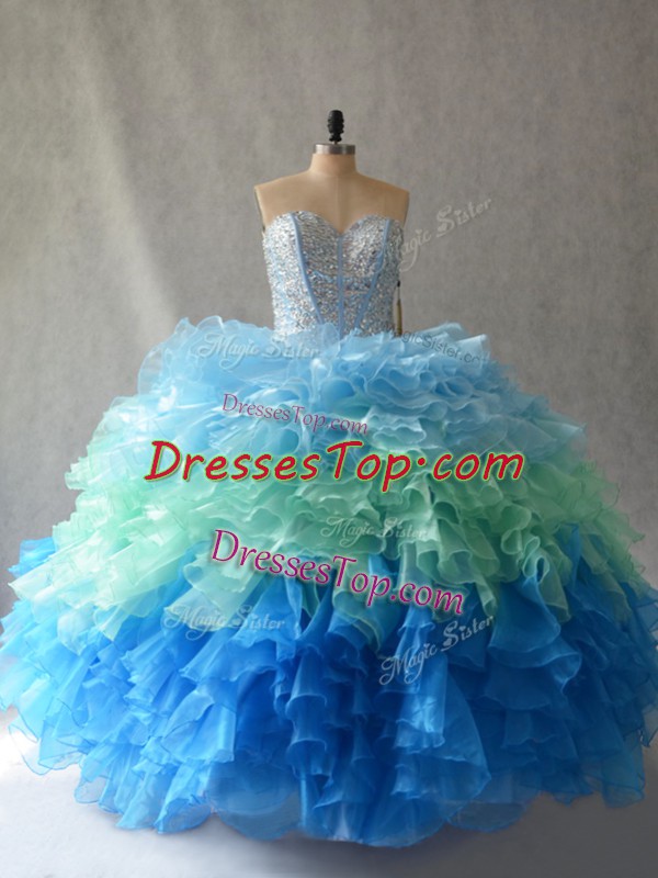 Suitable Multi-color Sweetheart Neckline Beading and Ruffles 15 Quinceanera Dress Sleeveless Lace Up