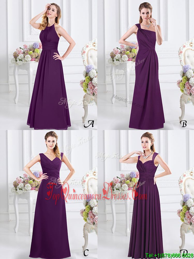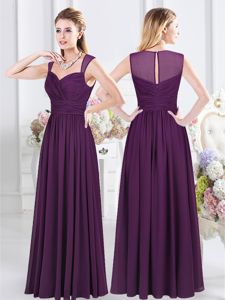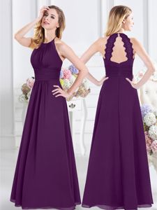 Suitable Purple Lace Up Halter Top Lace and Ruching Quinceanera Dama Dress Chiffon Sleeveless