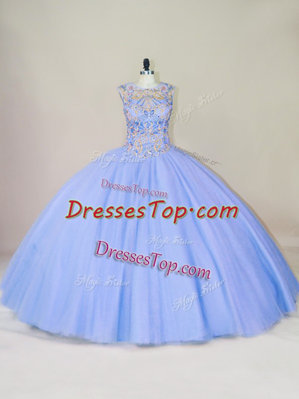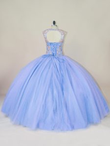 Suitable Scoop Sleeveless Lace Up Sweet 16 Dresses Lavender Tulle