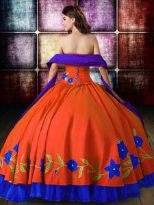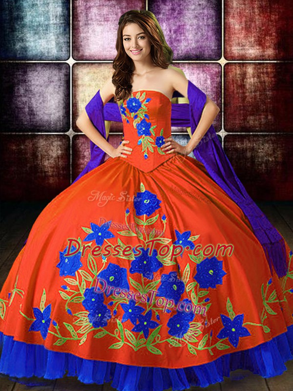 Suitable Sleeveless Taffeta Floor Length Lace Up 15 Quinceanera Dress in Multi-color with Embroidery