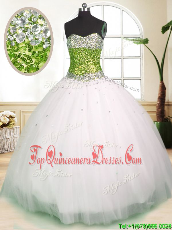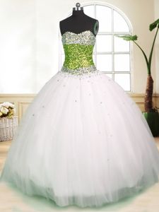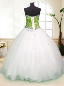 Suitable White Ball Gowns Tulle Sweetheart Sleeveless Beading Floor Length Lace Up Quinceanera Dresses