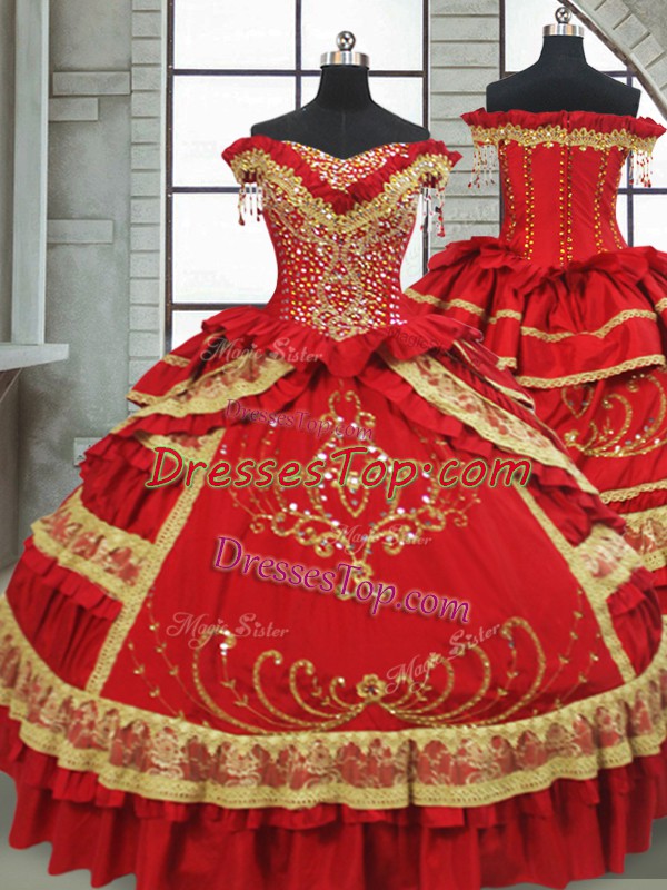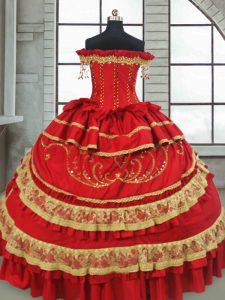 Sumptuous Floor Length Ball Gowns Cap Sleeves Red Quinceanera Gown Zipper