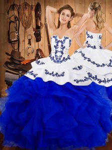 Sumptuous Floor Length Blue Quince Ball Gowns Strapless Sleeveless Lace Up