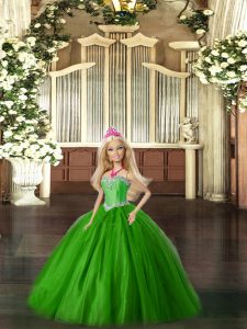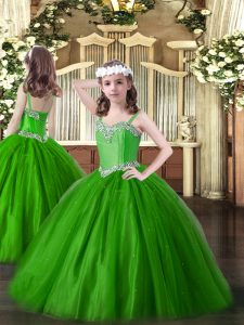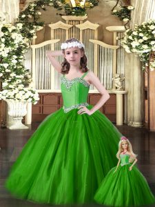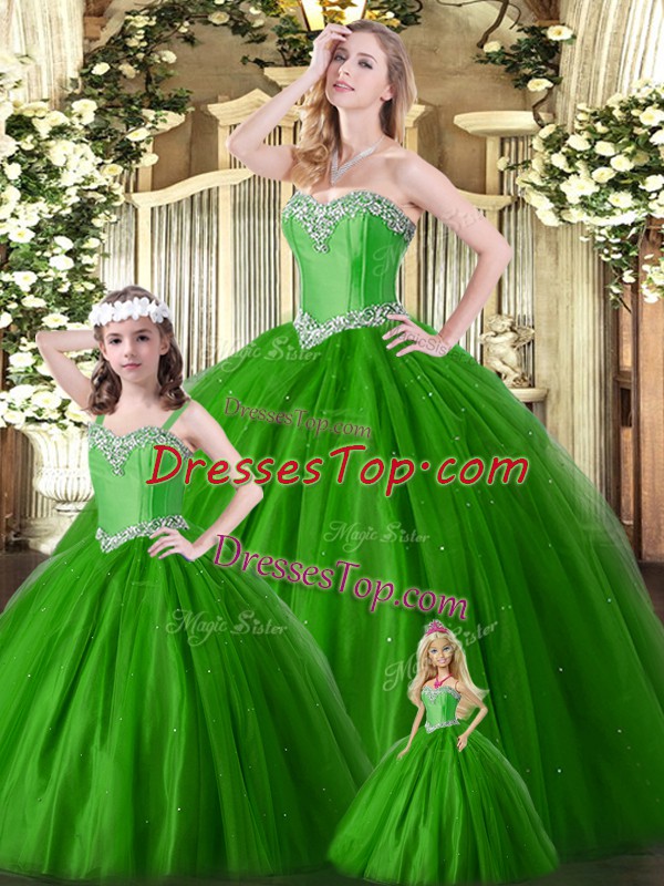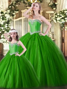 Sumptuous Floor Length Lace Up 15 Quinceanera Dress Green for Military Ball and Sweet 16 and Quinceanera with Beading