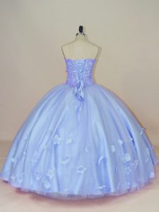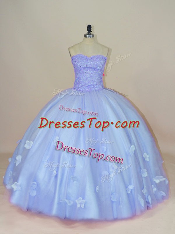 Sumptuous Floor Length Lavender Vestidos de Quinceanera Tulle Sleeveless Beading and Hand Made Flower