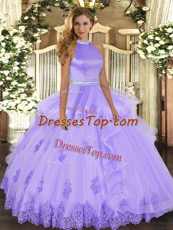Sumptuous Lavender Backless Quinceanera Gowns Beading and Ruffles Sleeveless Floor Length