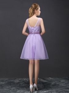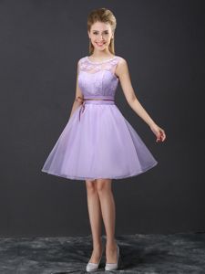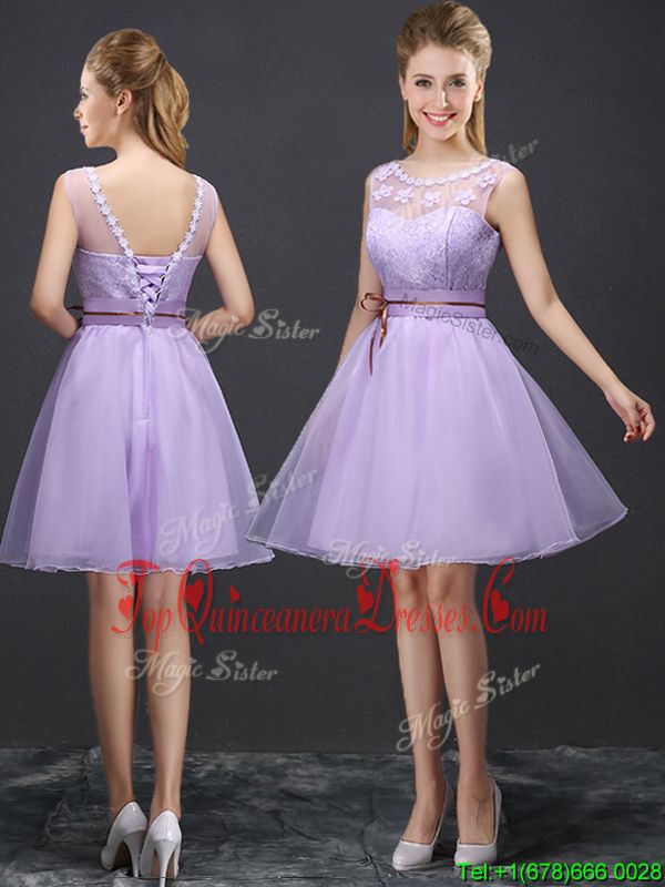 Sumptuous Lavender Lace Up Scoop Lace Dama Dress Organza Sleeveless