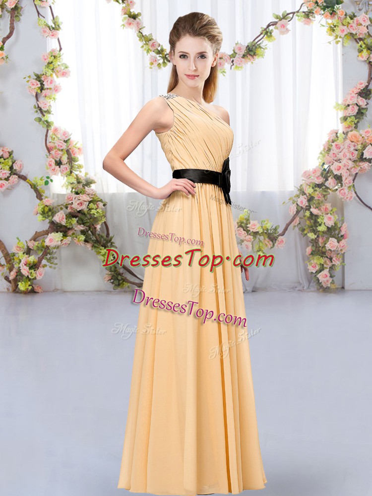 Sumptuous Orange Empire Chiffon One Shoulder Sleeveless Belt Floor Length Zipper Quinceanera Dama Dress