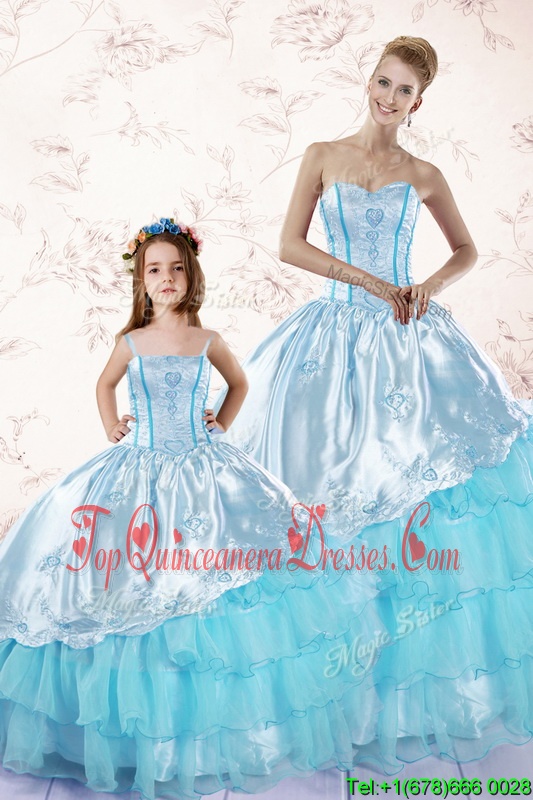 Sumptuous Sleeveless Embroidery and Ruffled Layers Zipper Quinceanera Dresses