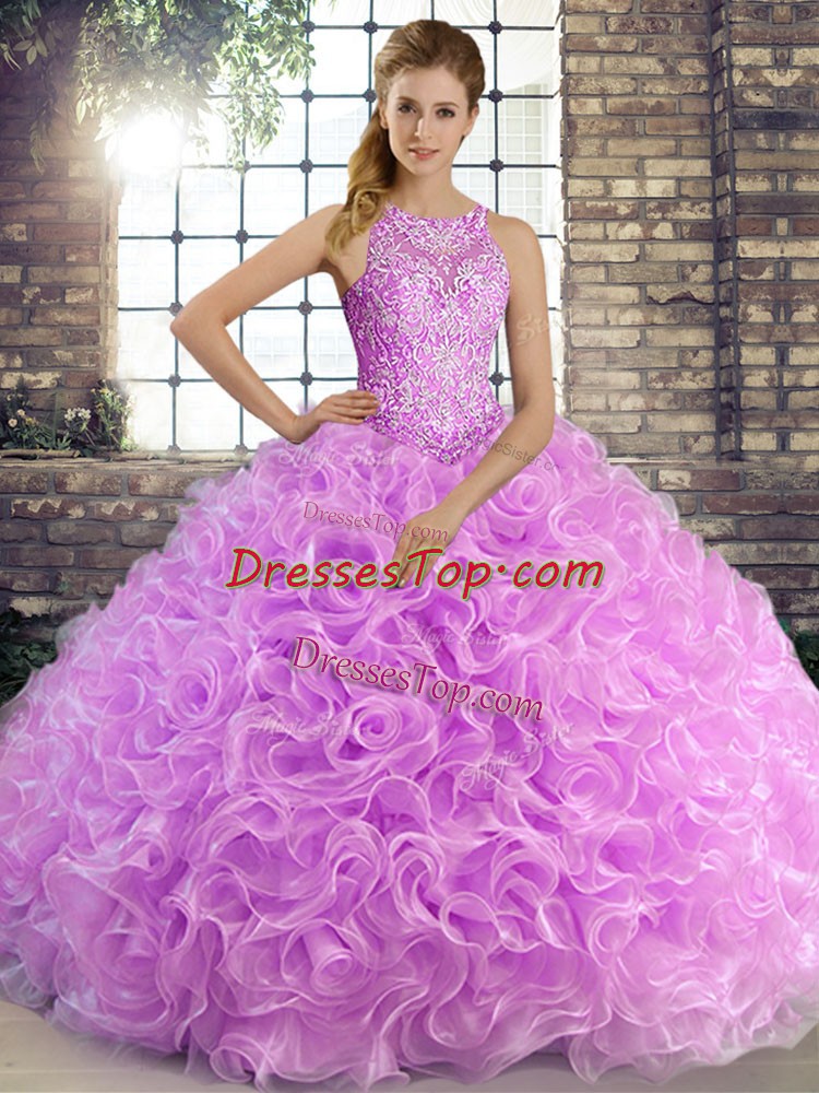 Sumptuous Sleeveless Floor Length Beading Lace Up Sweet 16 Dresses with Lilac