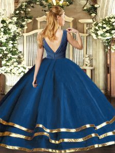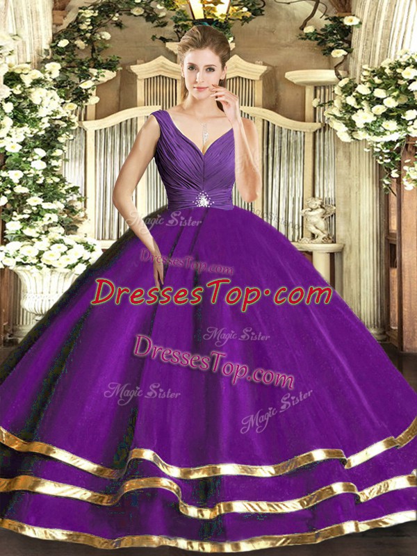 Sumptuous Sleeveless Tulle Floor Length Backless Sweet 16 Quinceanera Dress in Purple with Ruffled Layers