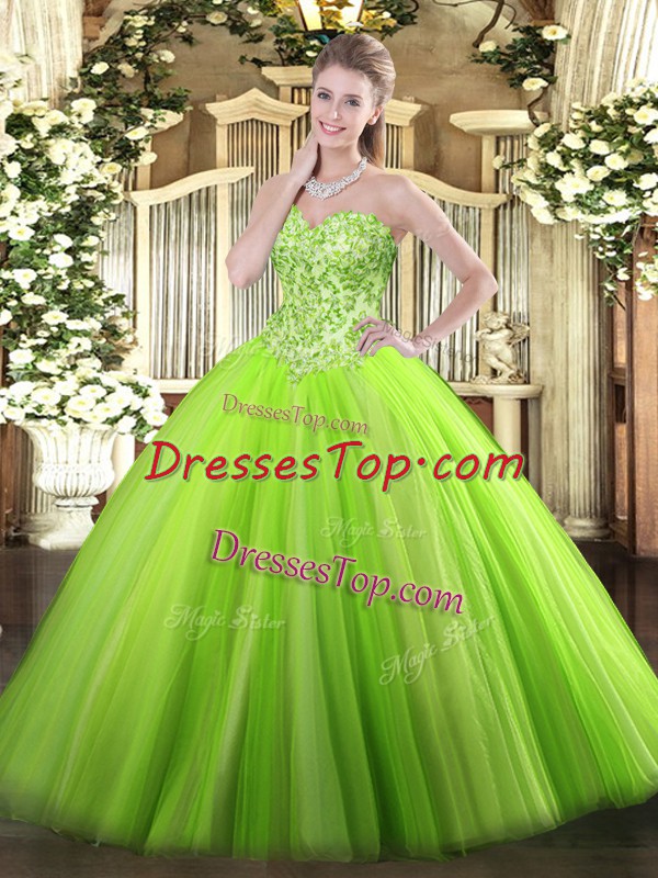 Super Ball Gowns Appliques 15th Birthday Dress Lace Up Tulle Sleeveless Floor Length
