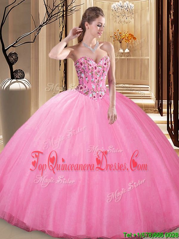 Super Ball Gowns Vestidos de Quinceanera Rose Pink Sweetheart Tulle Sleeveless Floor Length Lace Up
