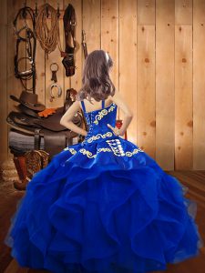 Super Embroidery and Ruffles Winning Pageant Gowns Rust Red Lace Up Sleeveless Floor Length