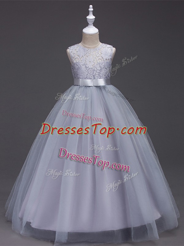 Super Grey Zipper Scoop Lace Pageant Dress Womens Tulle Sleeveless