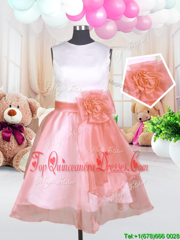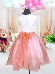Super Knee Length Baby Pink Pageant Dress for Teens Scoop Sleeveless Zipper