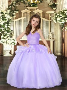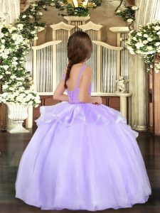 Super Lavender Ball Gowns Straps Sleeveless Organza Floor Length Lace Up Beading Little Girl Pageant Gowns