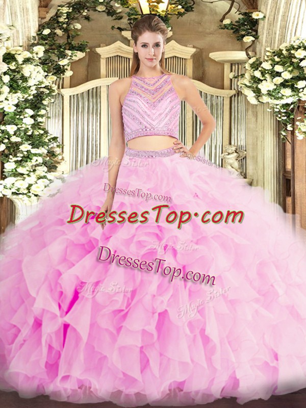 Super Lilac Scoop Backless Beading and Ruffles Quince Ball Gowns Sleeveless
