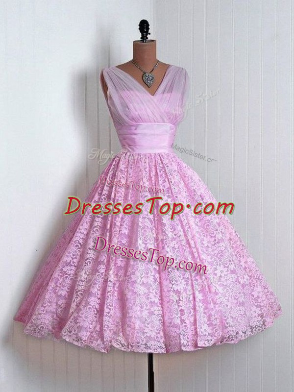 Super Lilac Sleeveless Lace Lace Up Quinceanera Court of Honor Dress for Prom and Party and Wedding Party