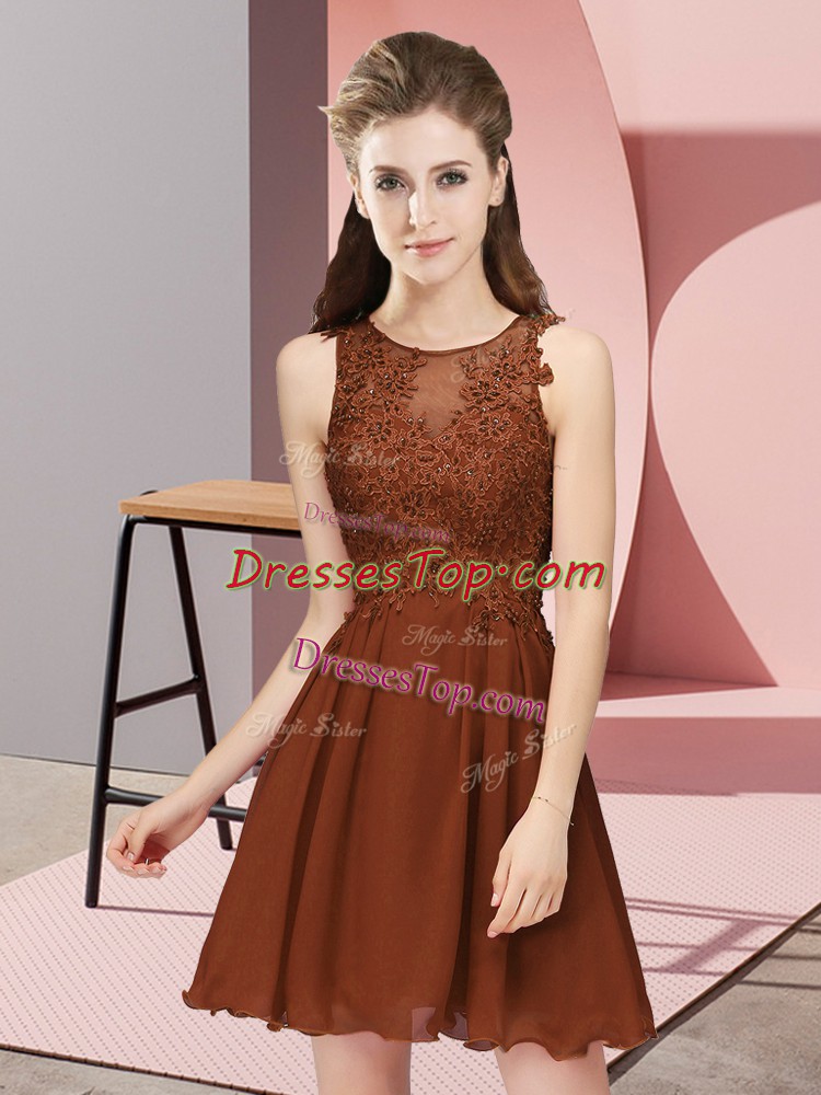 Super Mini Length Brown Vestidos de Damas Chiffon Sleeveless Appliques