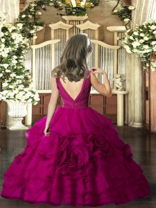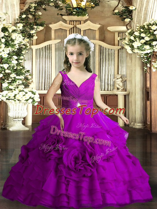 Super Purple Ball Gowns Beading and Ruching Little Girls Pageant Dress Backless Organza Sleeveless Floor Length