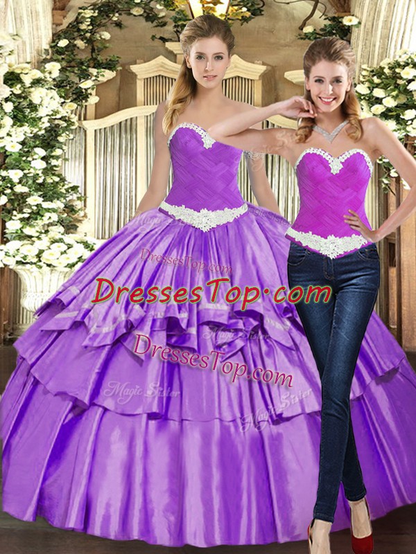 Super Sleeveless Lace Up Floor Length Appliques and Ruffles 15th Birthday Dress
