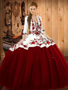 Super Wine Red Sweetheart Lace Up Embroidery Quinceanera Gown Sleeveless