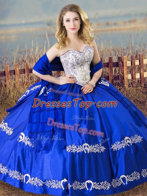 Superior Ball Gowns Quinceanera Dress Royal Blue Sweetheart Satin Sleeveless Floor Length Lace Up