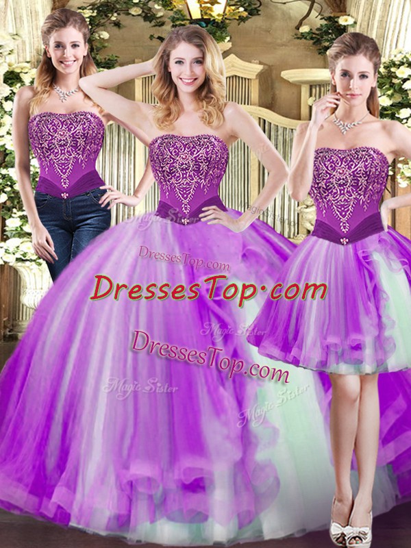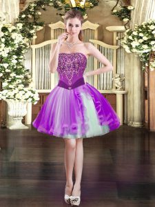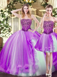 Superior Eggplant Purple Lace Up Quinceanera Gowns Beading Sleeveless Floor Length