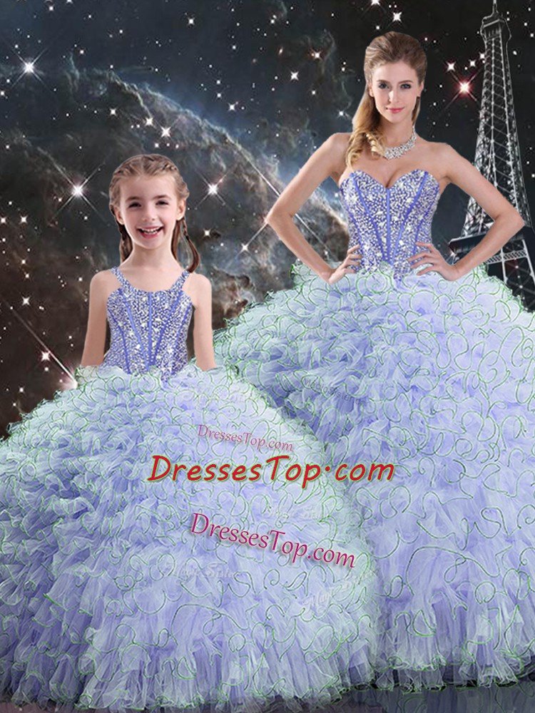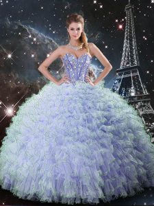 Superior Floor Length Lace Up Vestidos de Quinceanera Lavender for Military Ball and Sweet 16 and Quinceanera with Beading and Ruffles