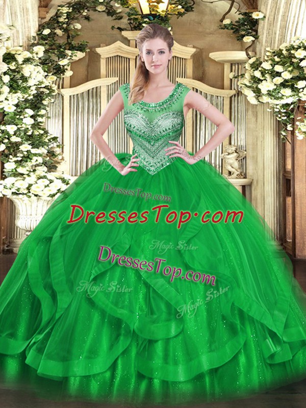Superior Green Lace Up Quinceanera Gowns Beading and Ruffles Sleeveless Floor Length