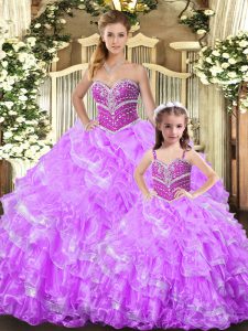 Superior Lilac Ball Gowns Beading and Ruffles Ball Gown Prom Dress Lace Up Organza Sleeveless Floor Length