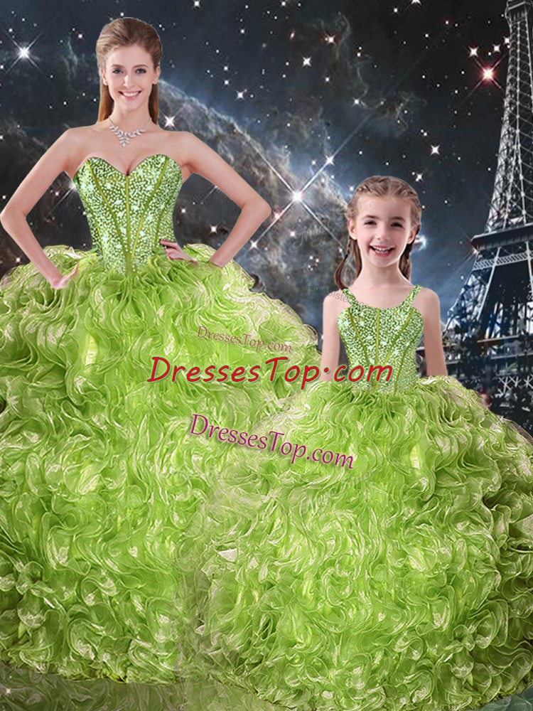 Superior Olive Green Ball Gowns Sweetheart Sleeveless Organza Floor Length Lace Up Beading and Ruffles Quinceanera Gowns