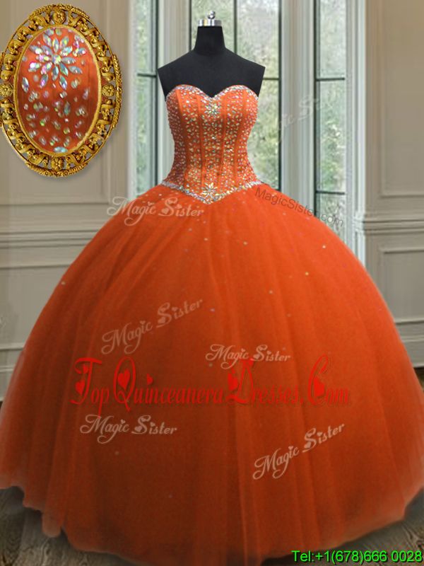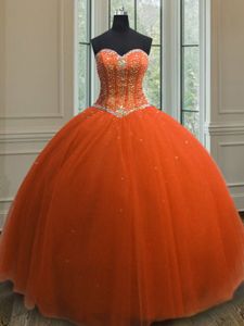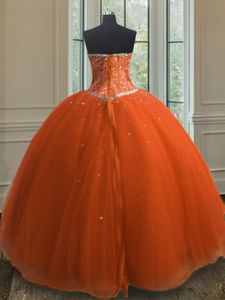 Superior Orange Red Lace Up 15 Quinceanera Dress Beading and Sequins Sleeveless Floor Length