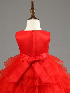 Superior Organza Scoop Sleeveless Zipper Ruffled Layers and Bowknot Evening Gowns in Red
