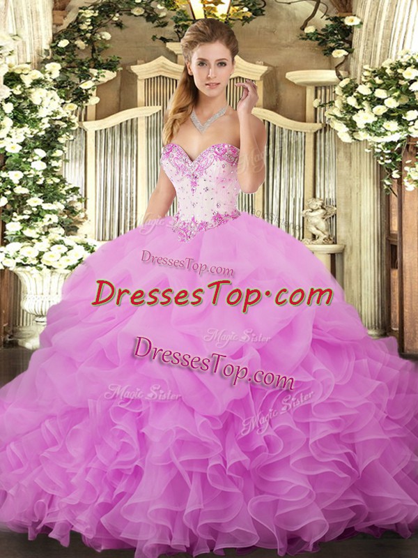 Superior Organza Sweetheart Sleeveless Lace Up Beading and Ruffles and Pick Ups 15 Quinceanera Dress in Lilac