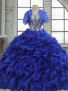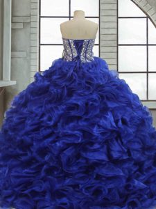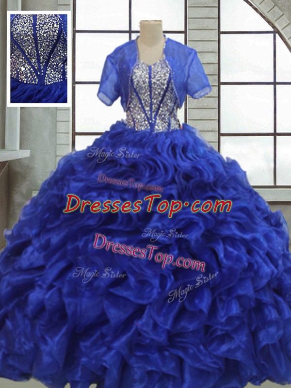 Superior Royal Blue Sweetheart Lace Up Ruffles Sweet 16 Quinceanera Dress Short Sleeves