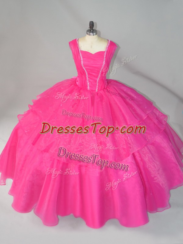 Superior Straps Sleeveless Organza Quinceanera Gowns Beading Lace Up