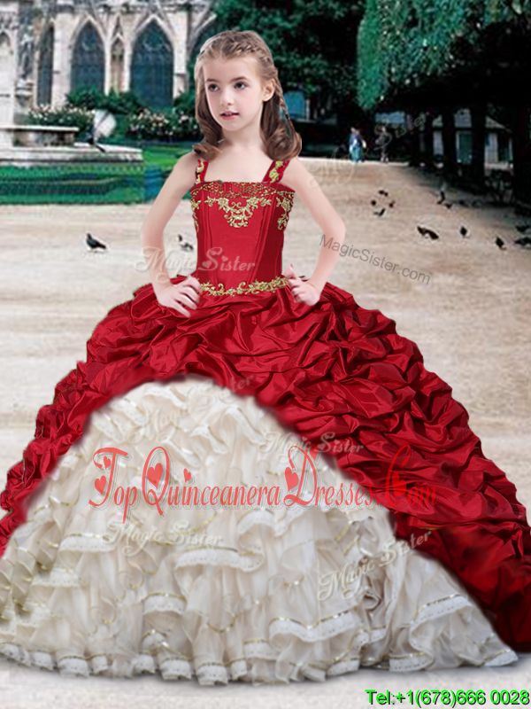 Superior Straps Straps Organza and Taffeta Sleeveless Floor Length Little Girls Pageant Dress and Beading and Appliques and Ruffles and Pick Ups